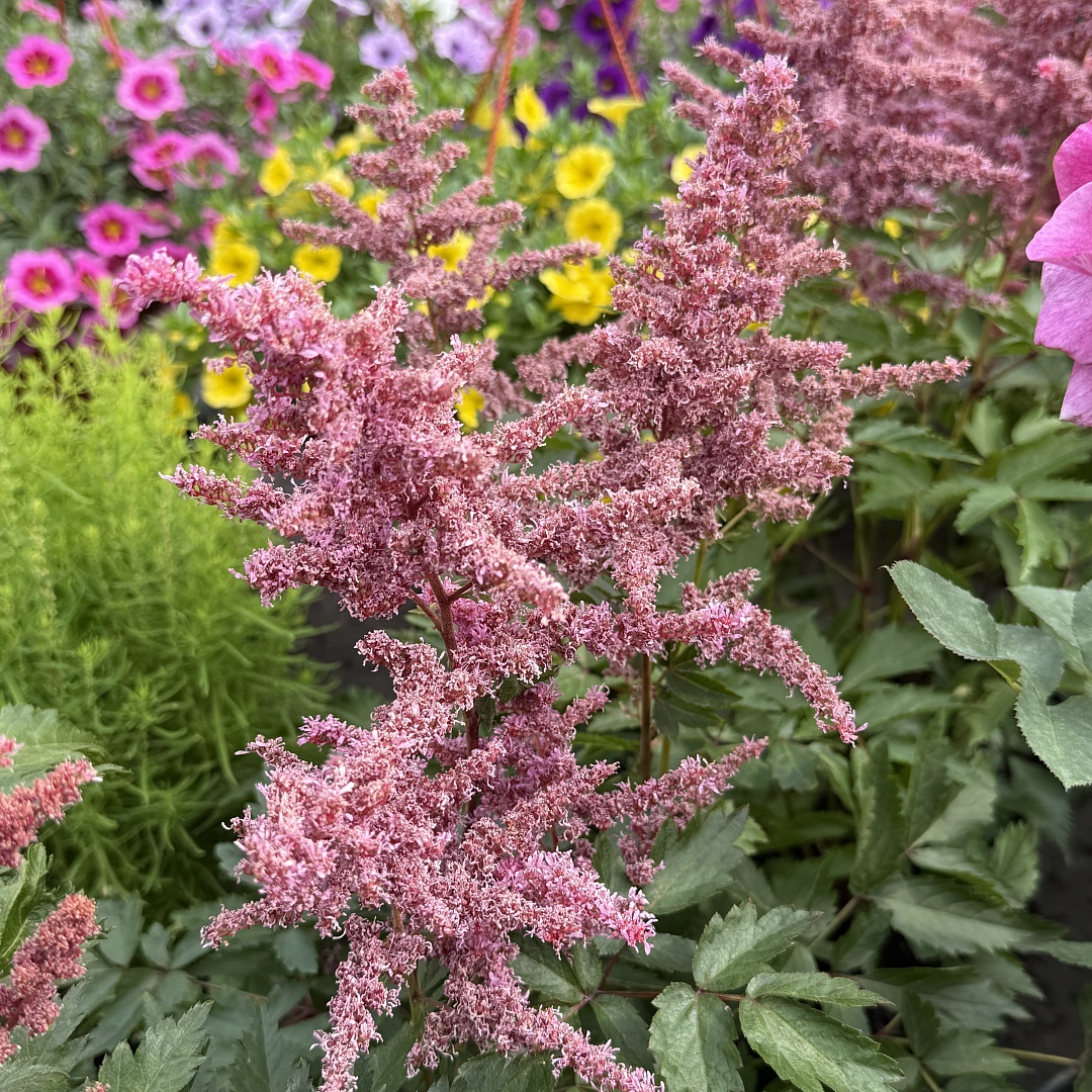 Астильба пришла в европейские сады из Восточной Азии в XIX веке — сначала как ботаническая редкость. Большинство современных сортов происходят от японских, китайских и корейских видов. Благодаря многолетней селекции астильба стала не только выносливой, но и по-настоящему декоративной. Цветовая палитра — от снежно-белого и нежно-розового до насыщенного малинового, фуксии и лилово-фиолетового. Есть и тёплые кремовые оттенки, и яркие вишнёвые акценты. Благодаря такой гамме астильба легко вписывается в любой цветник.