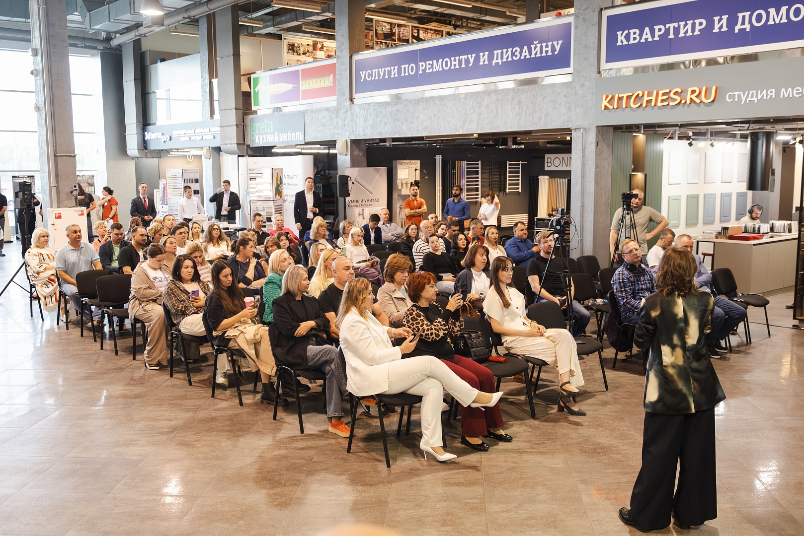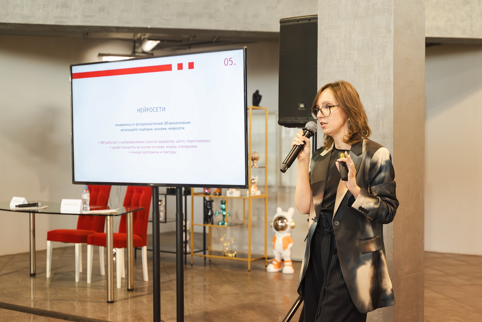 В программе были презентации от магазинов комплекса, демонстрация новых материалов и технологий, а также приглашенный гость мероприятия, Анна Разгулова — архитектор, дизайнер, основательница студии Dva Kvadrata — рассказала, как оптимизировать процесс работы над проектом, используя возможности искусственного интеллекта.
